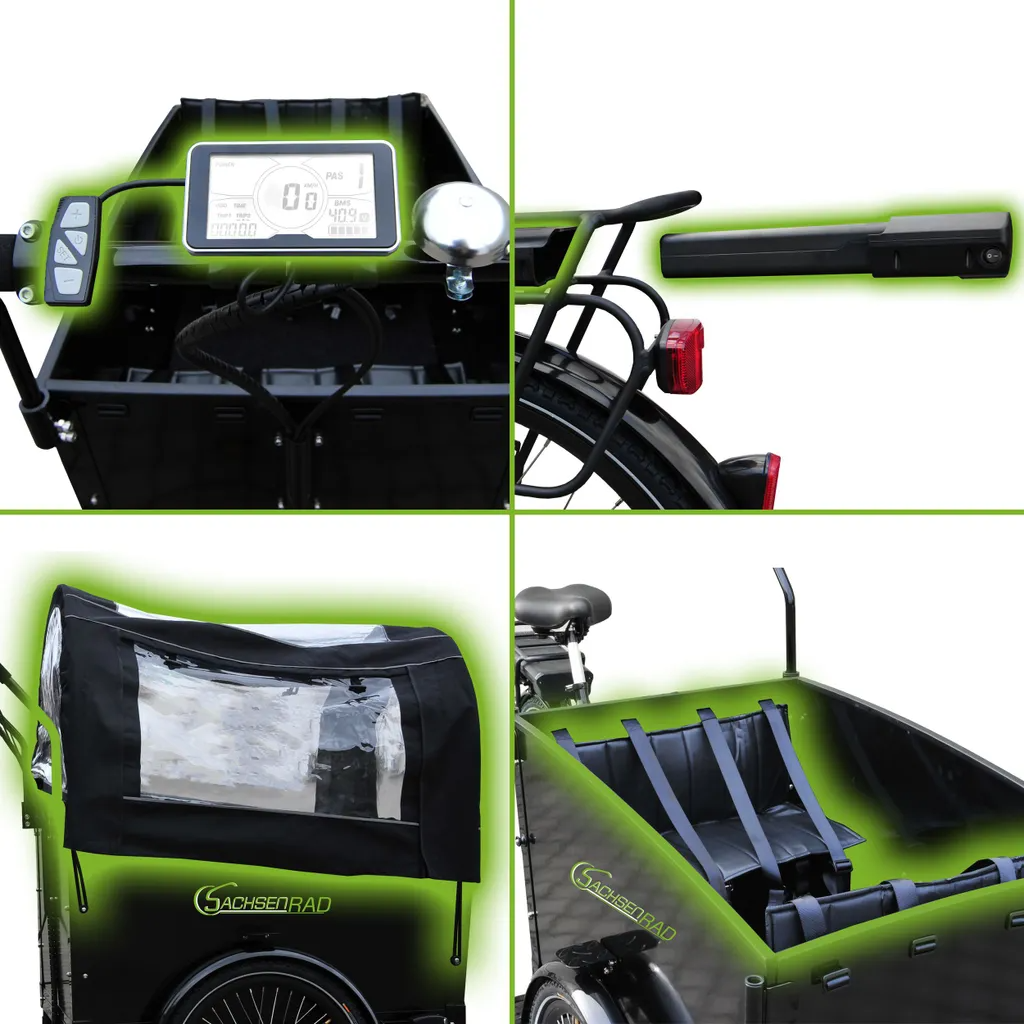 SachsenRAD E-Lastenrad T1, Flexible Transportbox mit Versteckter,Abschließbarer Box mit LCD Display und StVZO-Zugelassung für Kindertransport, usw